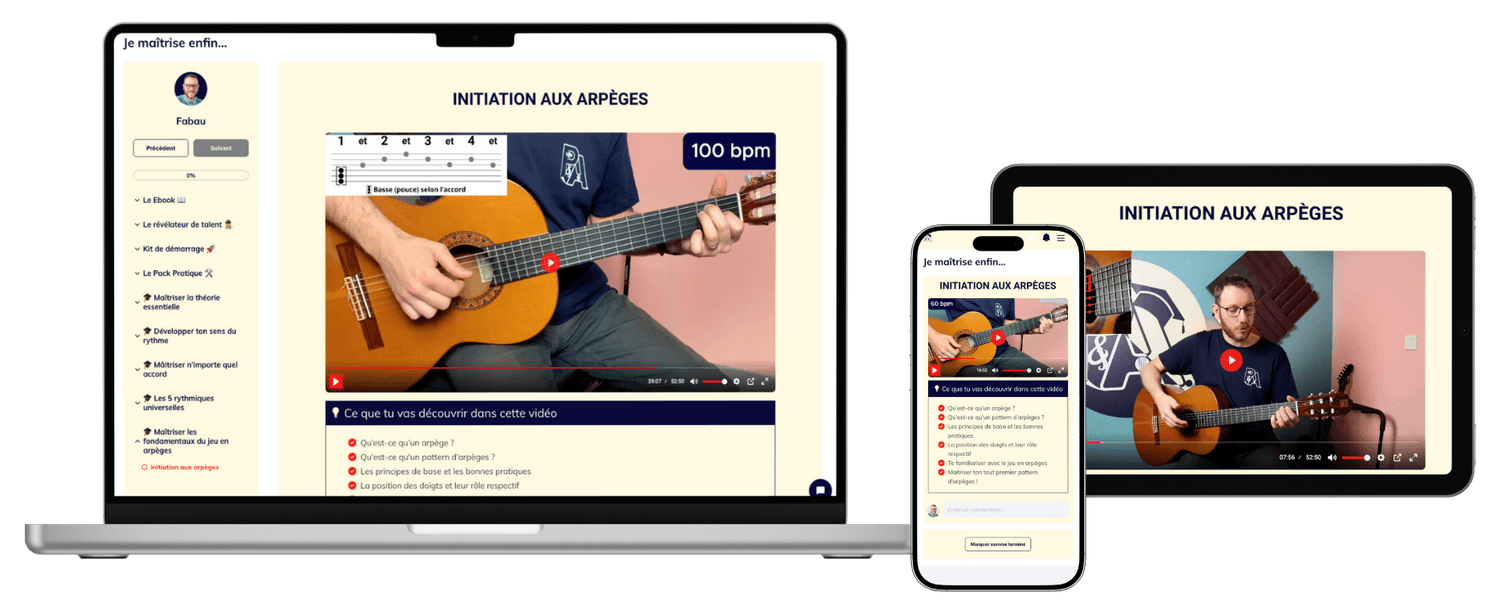 Contrairement à un programme généraliste, chaque mini-module se concentre sur un pilier fondamental de la guitare :